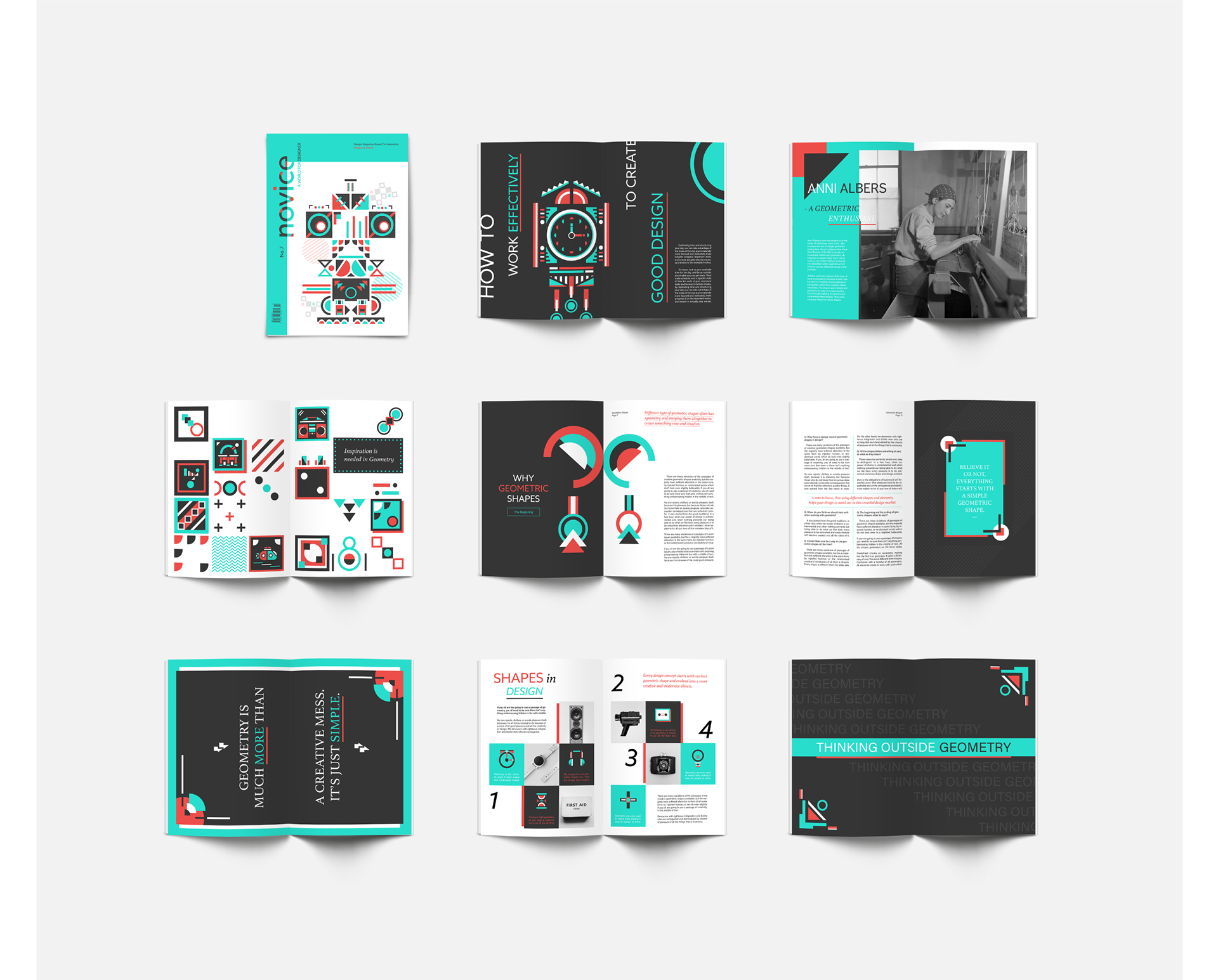 Novice is a fictional magazine, where the idea was to explore creativity by using simple geometric shapes.